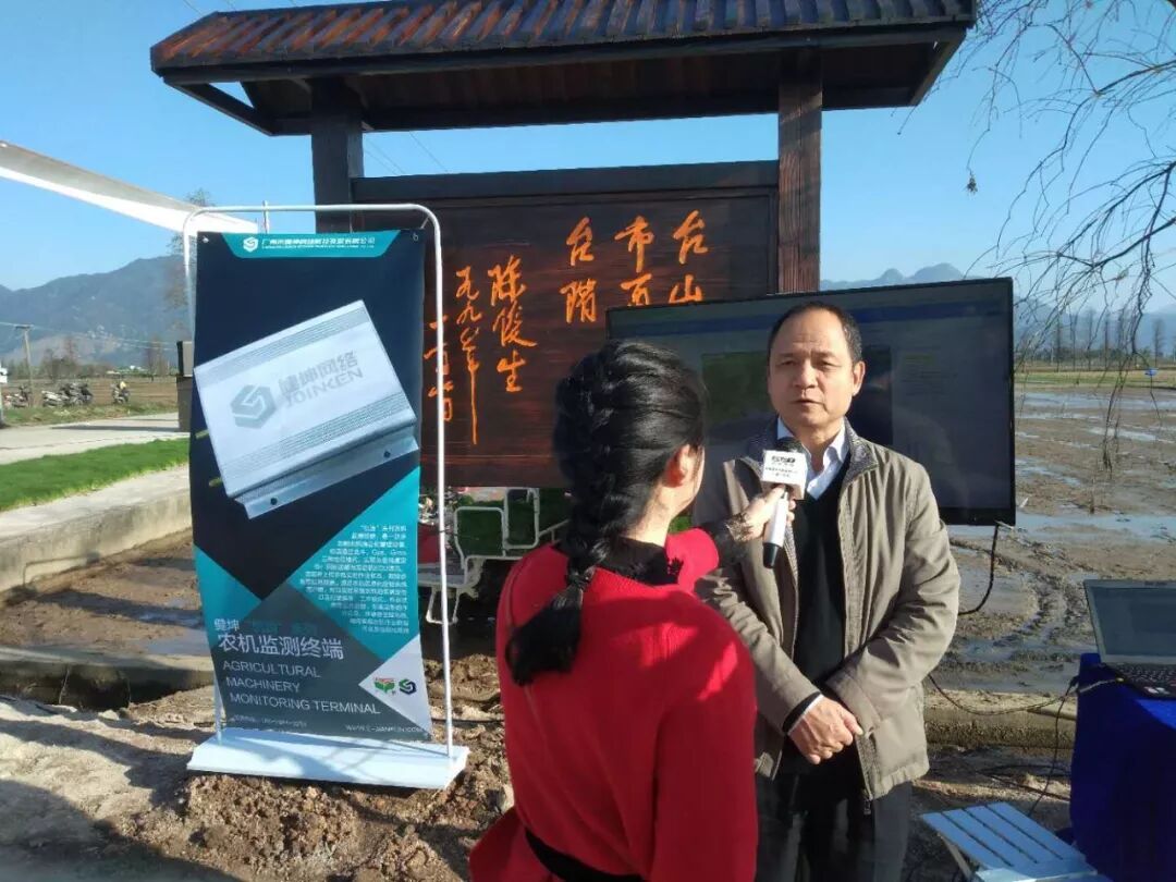 CCTV7、台山电视台等媒体对省农装所张汉月所长(上图右一)进行了采访,张所长现场对省农装所下属健坤公司的农机作业监测技术与应用做了详细阐述。