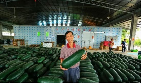 为了破解这个难题,2011年李广彬发起成立了康喜莱蔬菜专业合作社,以企业为龙头,以农户为基础,以基地来带动,建立起保护价收购、生产全程服务与监控等利益联结机制,做到“利益共享、风险共担”,村民能种能销。康喜莱蔬菜专业合作社优良的黑皮冬瓜远近闻名,2016年“三水黑皮冬瓜”荣获国家农业农部(现国家农业农村部)农产品地理标志登记证书。